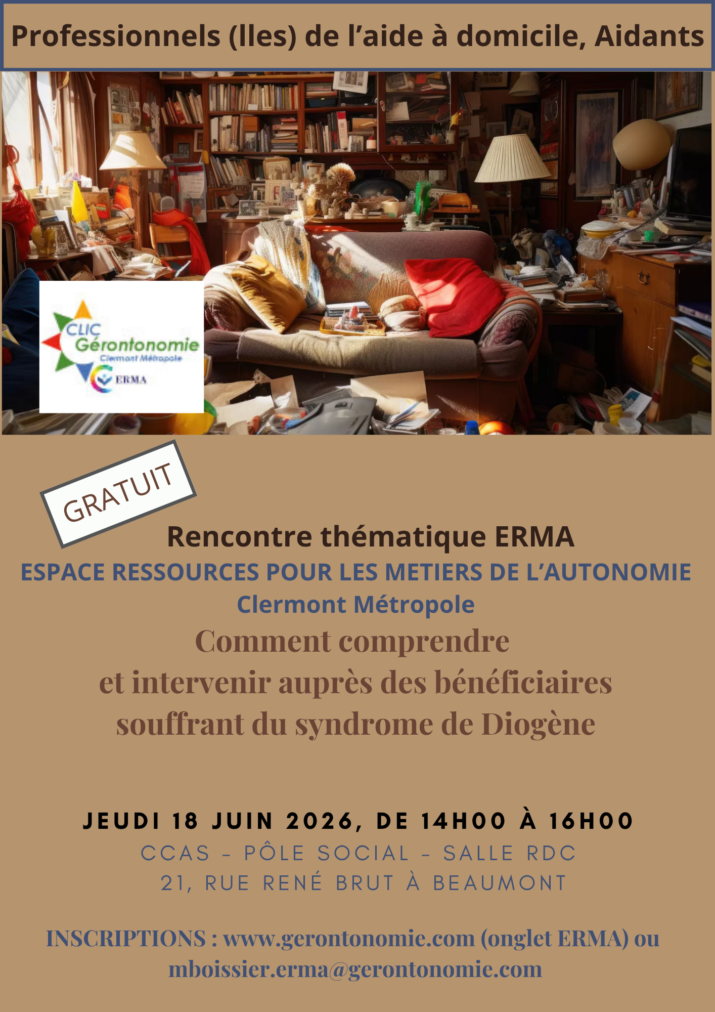 Avec le soutien de la Commission des Financeurs de la prévention de la perte d'autonomie du Puy-de-Dôme et de la ville de Pont-du-Château qui accueille la Cie de théâtre Attrape Sourire, le CLIC Gérontonomie Clermont Métropole vous invite à passer un bon moment et à débattre de ce sujet pendant et après le spectacle autour d'un verre.