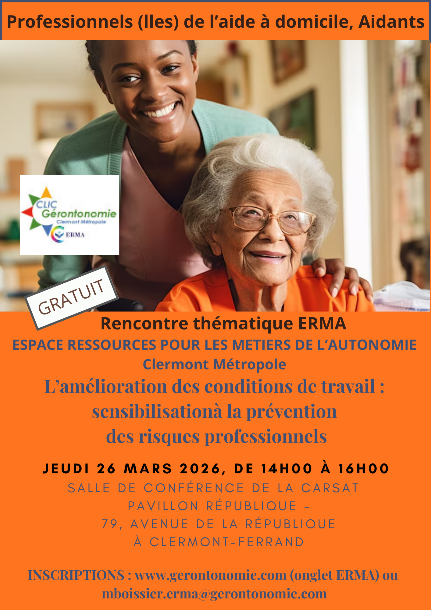 GRATUIT - Public concerné : Tout public adulte dont les aidants, aidés, auxiliaires de vie, aide-soignant(e)s, structures d'aide à domicile, Etablissement pour personnes âgées, relais de répit, CCAS, professionnels du vieillissement, mutuelles, etc.
